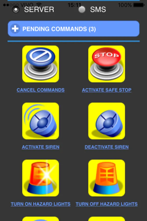 - Send commands to turn off the vehicle, turn on the siren, turn on warning lights, etc.