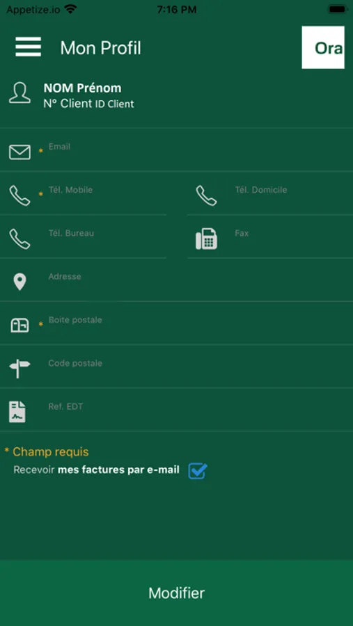 L’application Ora Conso vous permet de suivre la consommation de vos forfaits Ora Mobile, vos abonnements et cartes prépayées internet Ora 4G. D’autres services sont également disponibles dans cette application.