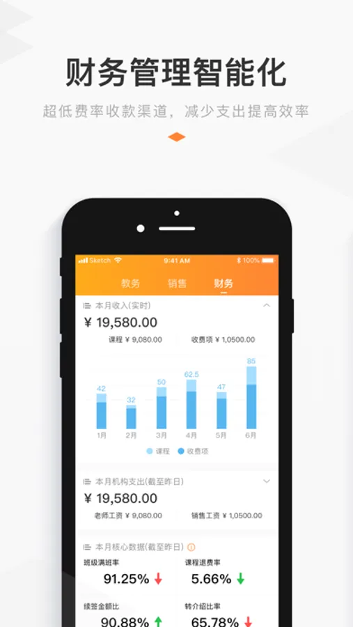 ④财务报表:财务报表定期推送,助于校区科学决策。