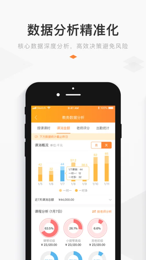 ② 智能考勤:点名刷卡、人脸考勤等多种途径,课时课消自动统计;