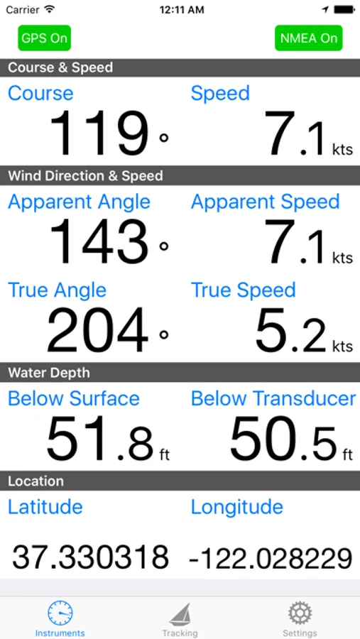 Sail Buddy receives NMEA data from external hardware via a WiFi connection. Your hardware must support WiFi or be connected to a multiplexer with WiFi support. Sail Buddy includes a "demo" mode that plays sample NMEA data if you just want to see how the app works without connecting to an NMEA network.