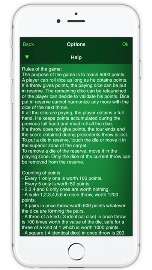The game of 5000 is a popular dice game that exists in many forms. This version uses 6 dice and some criteria can be adjusted to meet various rules that exist around the world.
