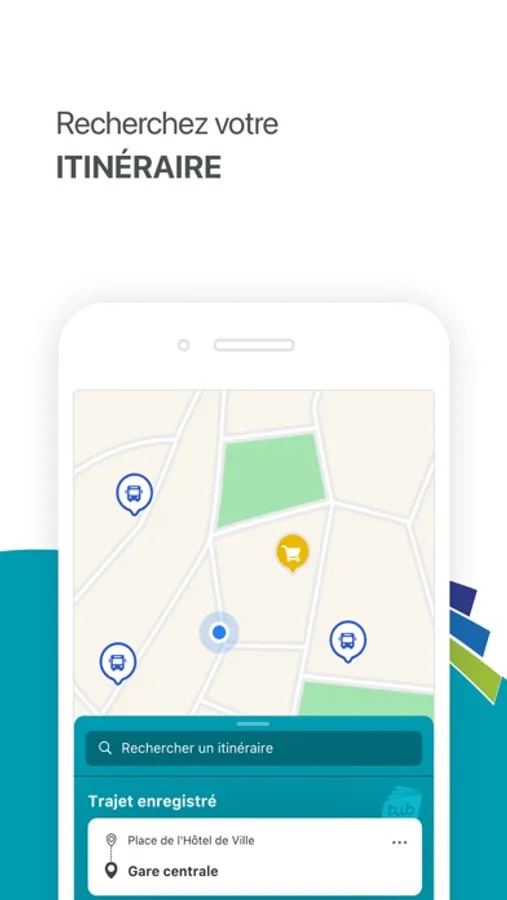 L'application TUB vous propose toutes les fonctionnalités pour voyager sur votre réseau de transport en commun : horaires temps réel et théorique, info trafic, recherche d'itinéraire, plans, achat de titres de transport.