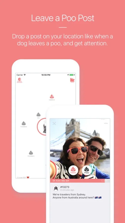 * Drop a post on your location like when a dog leaves a poo, and get unlimited attention.