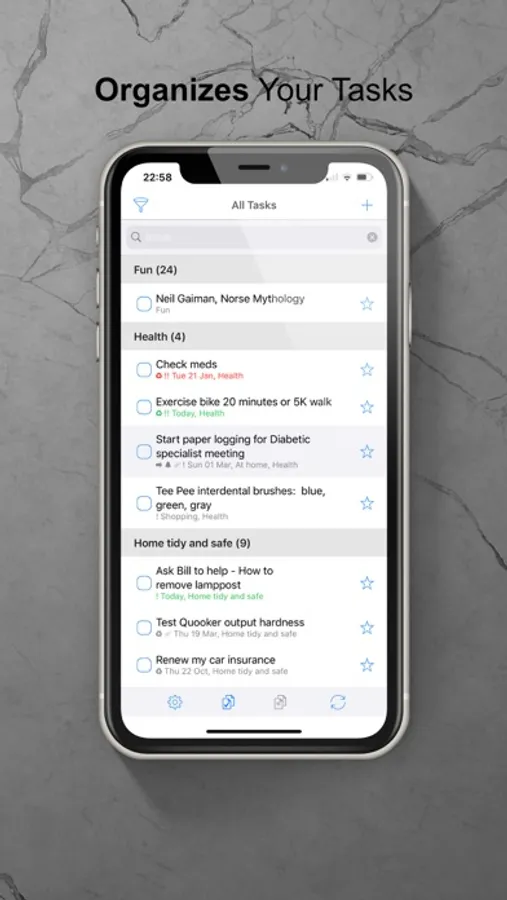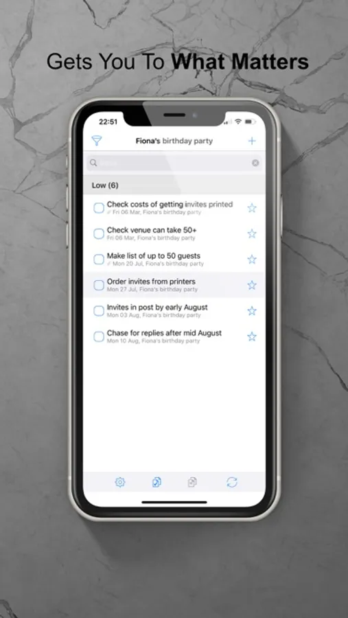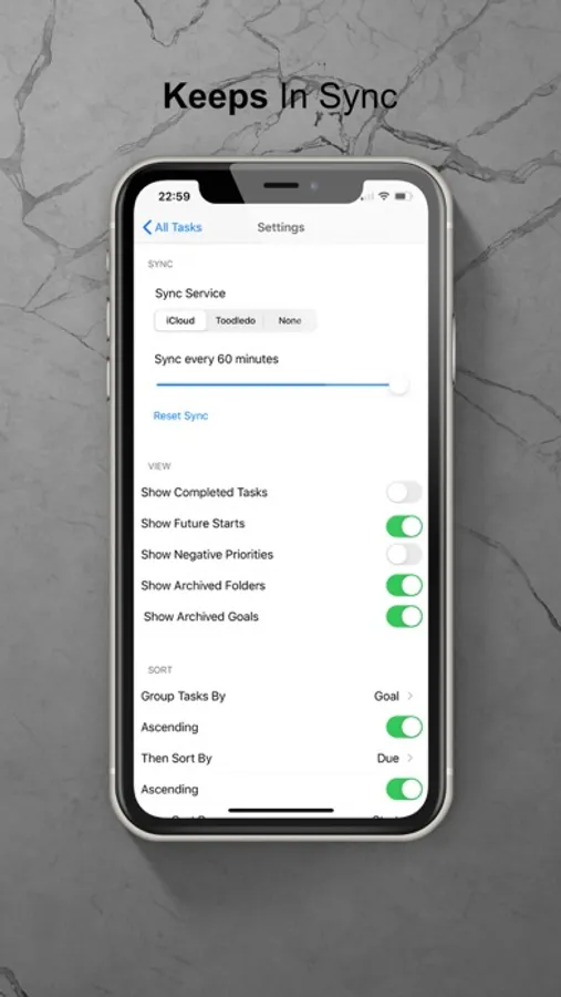 * Keep your task list in sync across all your iPads and iPhones, using Toodledo or iCloud.
