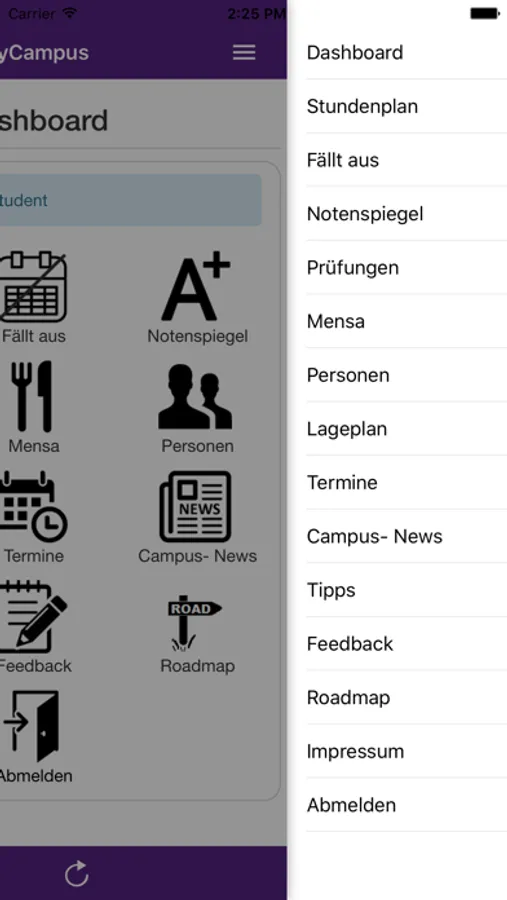 - Studierende organisieren ihr Studium mobil, sicher und komfortabel: Wichtige Fristen, wie Rückmeldefrist oder Prüfungsanmeldezeitraum, zeigt die App rechtzeitig an.