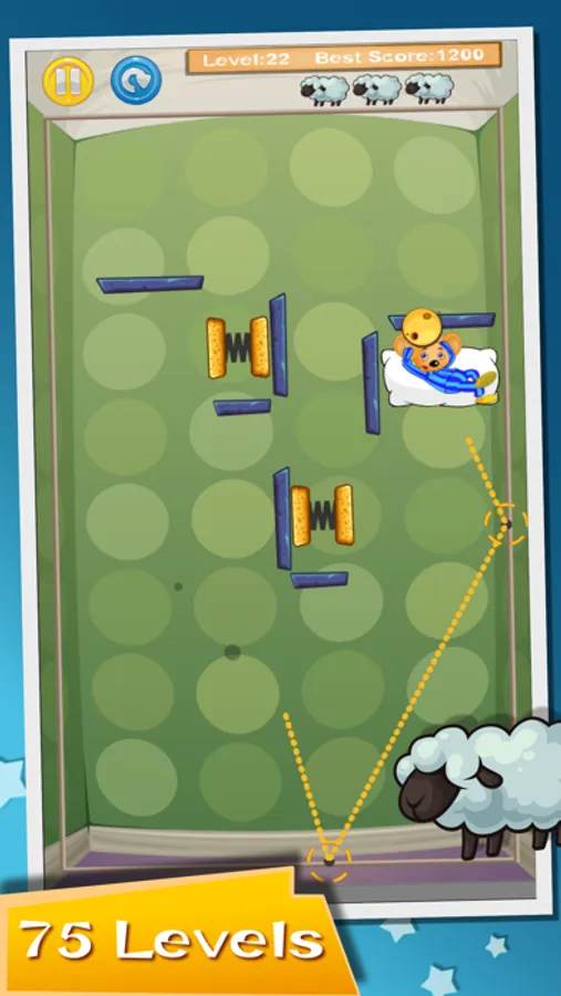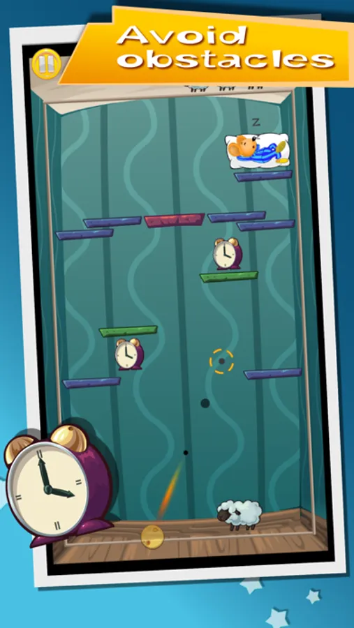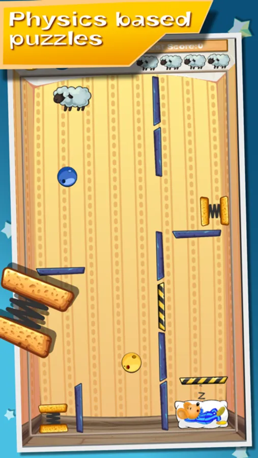 Find the smartest solution to the puzzles on each of the 75 hand crafted levels. Earn Gold, Silver and Bronze stars by completing each level with as much of Sleepy Mouse's precious sleep as possible. Shot complexity helps you to get top scores so aim for as many bounces as possible on your final shot.
