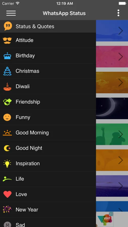 Wishes status covered almost all indian festivals status like, Diwali, New-Year, Navratri, Janmastmi, Holi, etc,.
