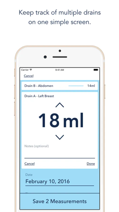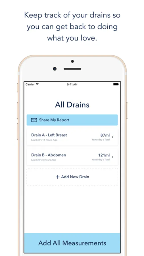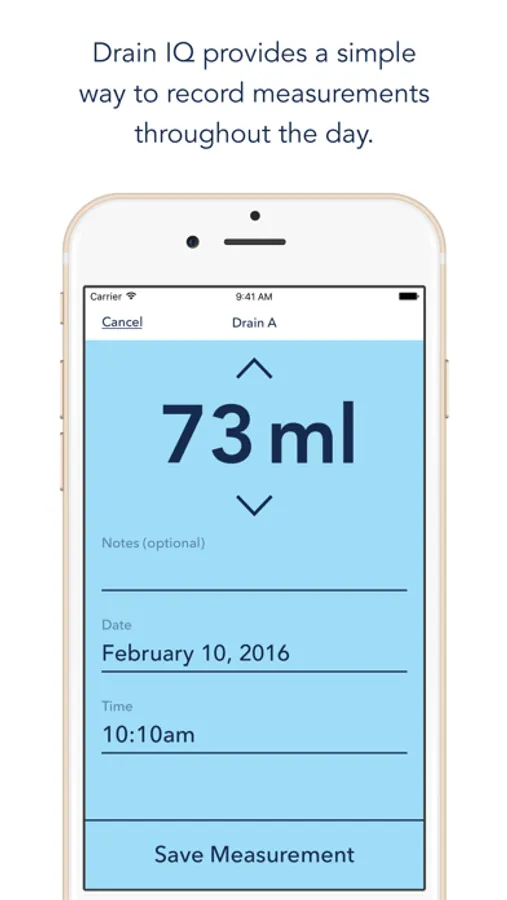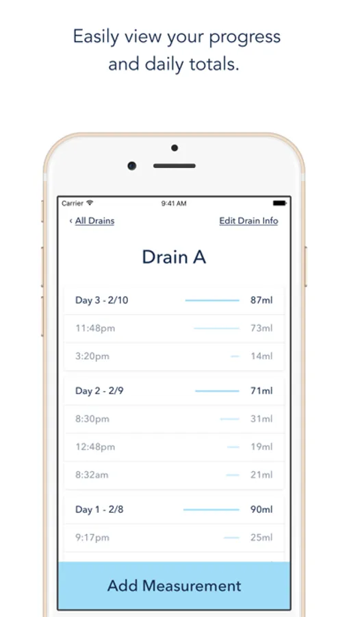 • Your Drain IQ Report includes: the drain label/location, post operative days/dates, and daily total measurements.