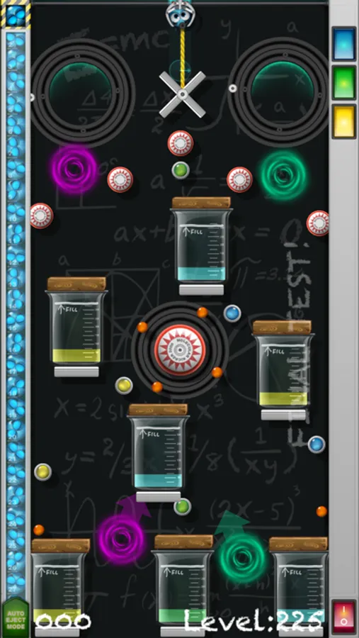 Make your way through over 200 levels of Atomic Pachinko! A fast action cross between Pachinko and Pinball makes for a game that requires both skill and a little luck. As you progress through the levels, you will get new objects to interact with including force fields, bumpers, switches, flippers, and portals, some that you can adjust before you drop your "Atom" into the playfield. Fill up the beakers with the required number of Atoms, then move on to the next level. Make your way through grade shool, junior high, high school, college to finally earn your Atomic Pachinko PhD, if you have what it takes! Good luck!