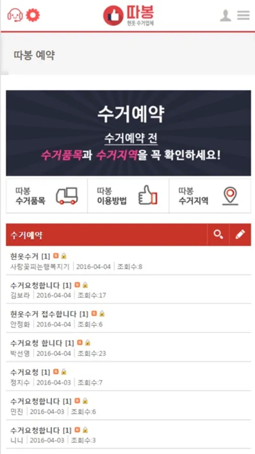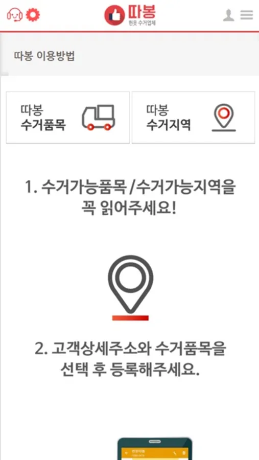 수거담당자 지원 : 어플리케이션 내 지원가능