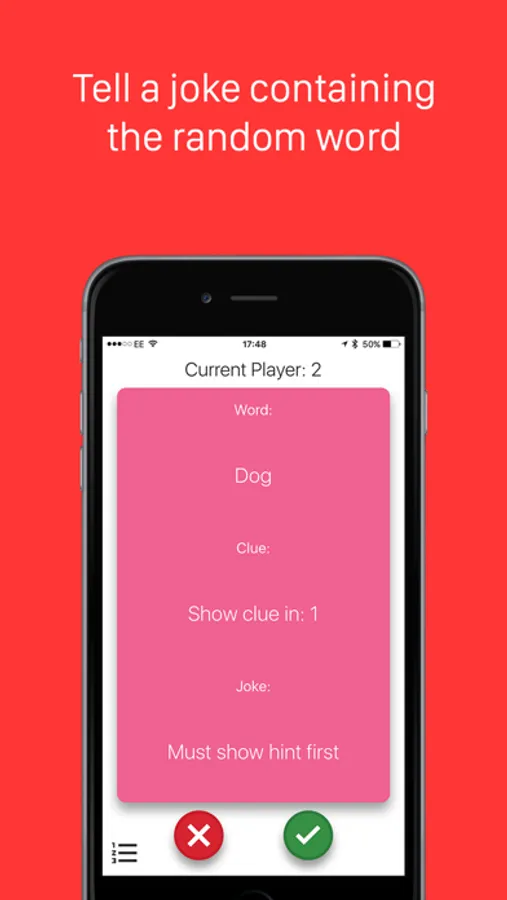 The aim of the game is to think of a joke containing the random word provided. If you can not start telling the joke within five seconds you can choose to be shown a clue. If you are still struggling, you can choose to see the full joke.