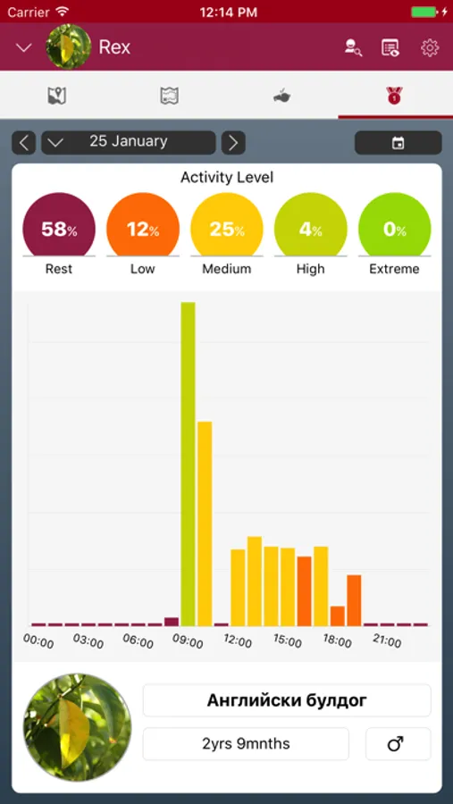 Activity - stats by month/day/hour about the registered moves of the pet.