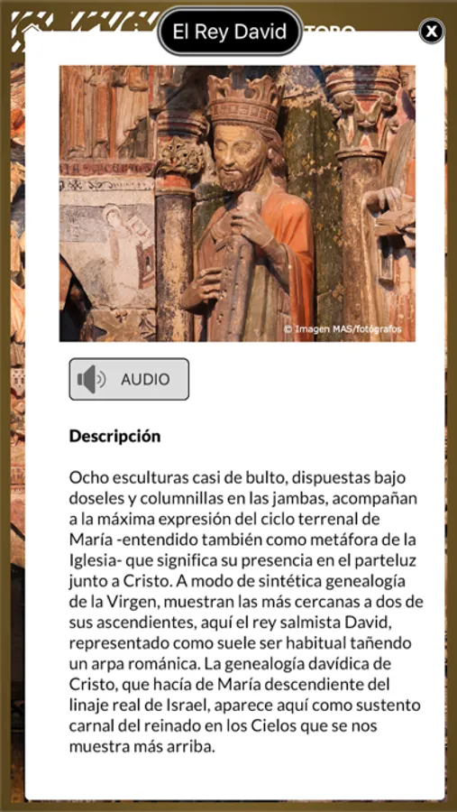 De funcionamiento fácil e intuitivo la aplicación permite descubrir cada uno de los detalles de los relieves y conocer su significado. Nunca has tenido tan cerca estas maravillosas y asombrosas escenas del siglo XIII y uno de los pocos ejemplos de escultura arquitectónica que conserva su policromia original.
