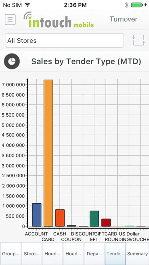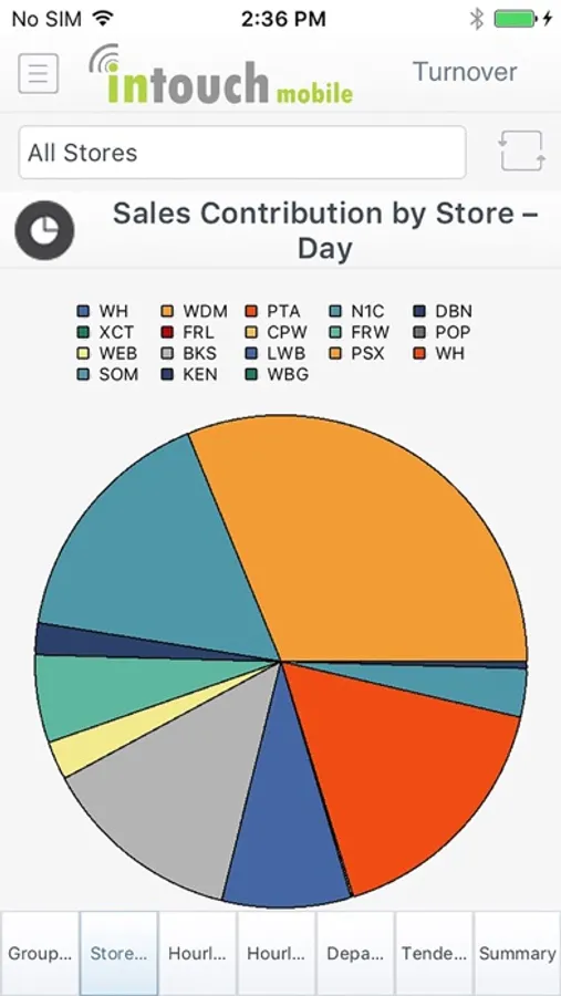 Intouch Mobile Dashboard connects to your Intouch or Prophet Retail database to provide performance information for a company or group. You can select from a number of categories and view various statistics for one or all stores.