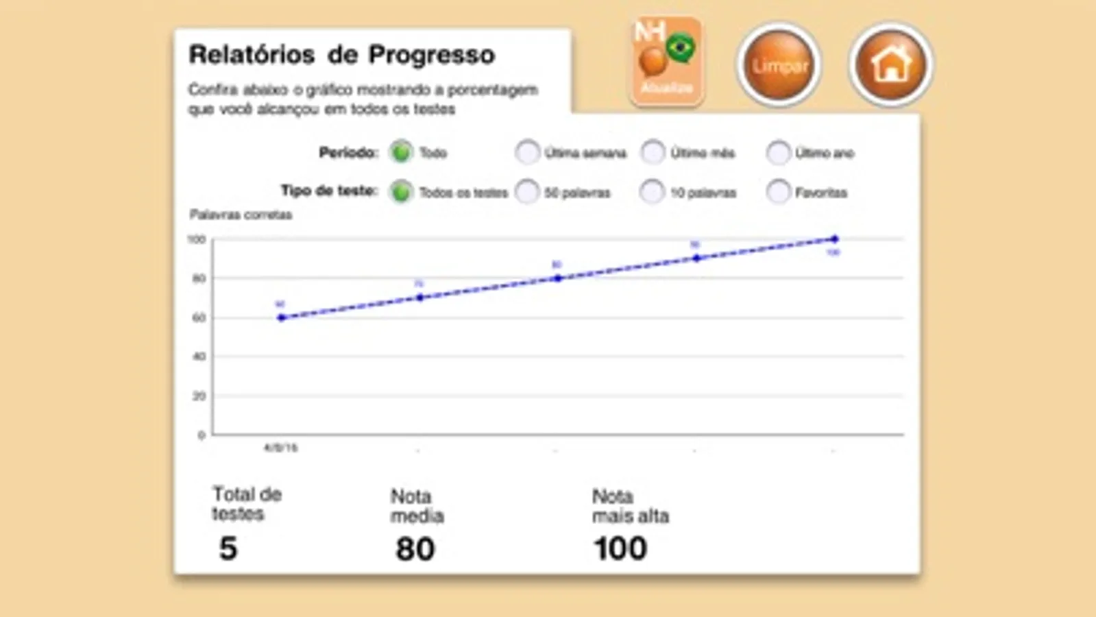 Avaliação: teste de 10 palavras (atualização para a versão completa com opções de testes adicionais).