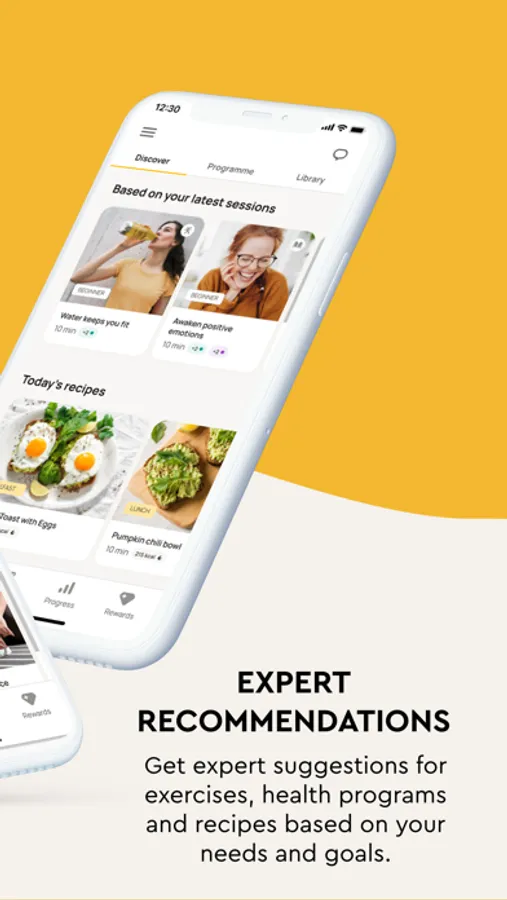 Choose between over 3,000 personalised coaching programmes for all levels featuring fitness exercises, yoga and flexibility classes, mindfulness sessions, nutrition tips, inspiring recipes, and educational articles.