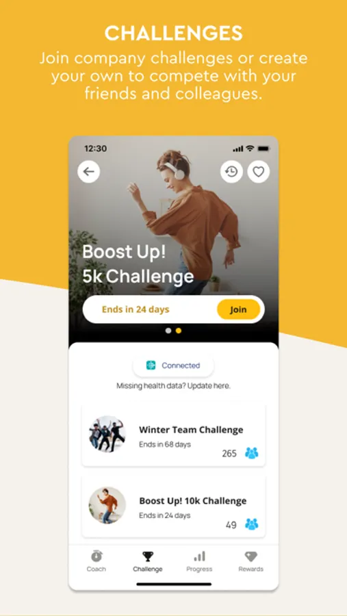 Track your activity: Connect Humanoo to the Apple Health App* or one of the following supported vendors: Fitbit, Garmin, Withings, and Polar.