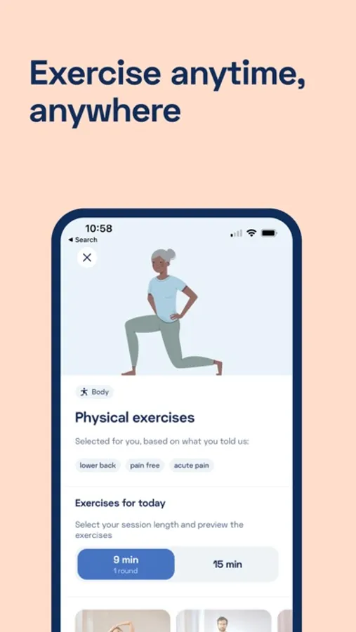 • PERSONALIZED ROUTINE: Kaia sets up a combination of mobility, strengthening, and breathing exercises within a 15-minute routine.