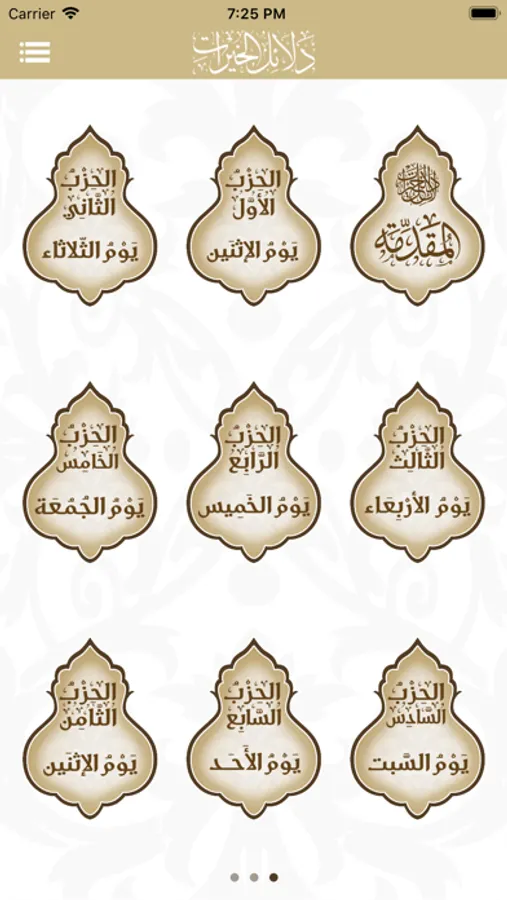 Dalail al-Khairat is a famous collection of prayers for the Islamic prophet Muhammad, which was written by the Moroccan Sufi and Islamic scholar Muhammad Sulaiman al-Jazuli ash Shadhili (died 1465). It is popular in parts of the Islamic world amongst traditional Muslims - specifically North Africa, the Levant, Turkey, the Caucasus and the South Asia and is divided into sections for daily recitation. The full English translation of the title is (Way-marks of Benefits and the Brilliant Burst of Lights in the Remembrance of Blessings on the Chosen Prophet).