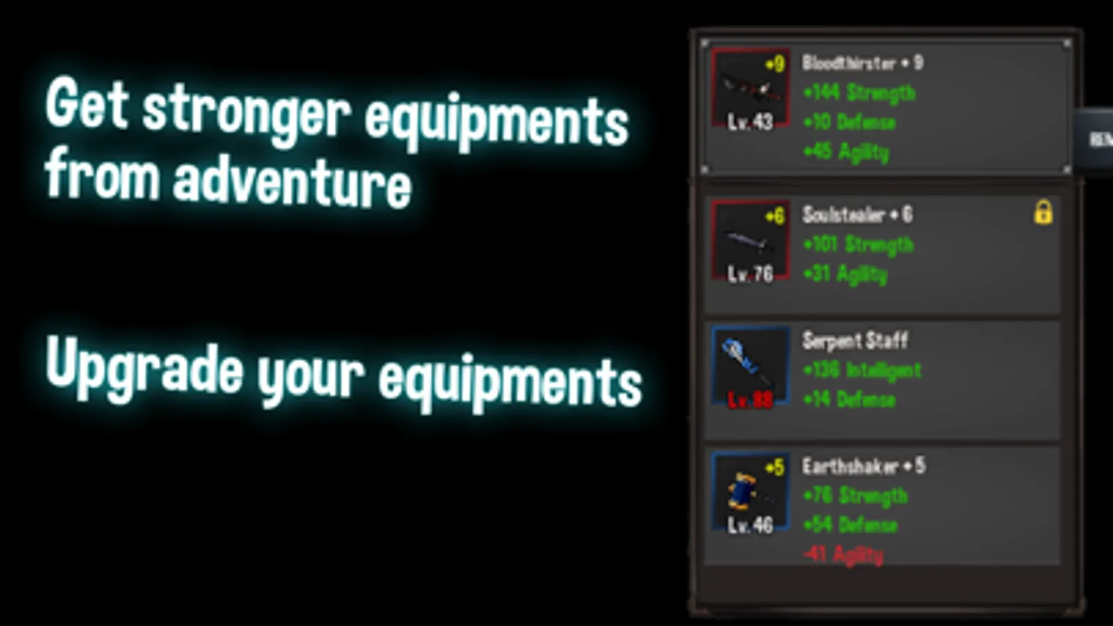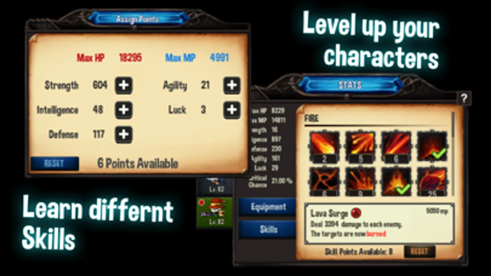 - Level up and customize your character's attribute