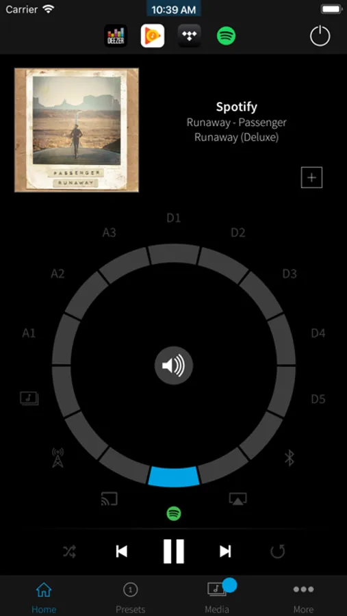 • Control Playback – Select audio sources, control volume and view Now Playing status