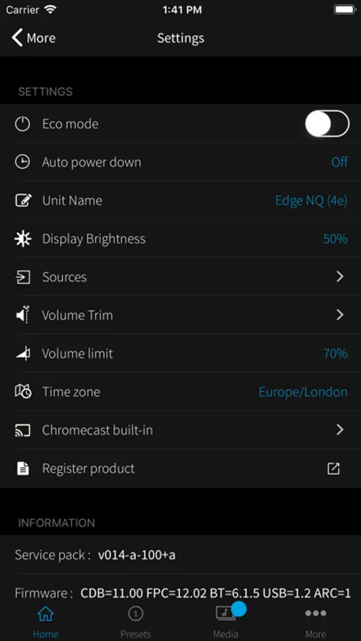 • Configure Your Product – Set-up Edge the way you like it. Rename the unit, set volume limits, change standby modes and much more