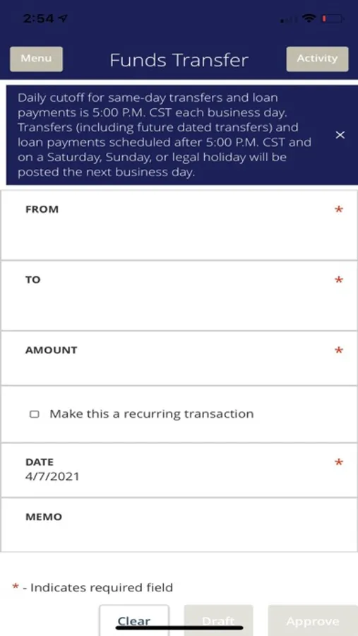 • Submit an ACH transaction or domestic wire transfer from an existing template