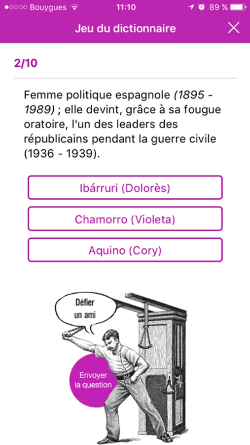 • Défiez vos amis en leur envoyant la question par SMS, courriel ou Facebook®