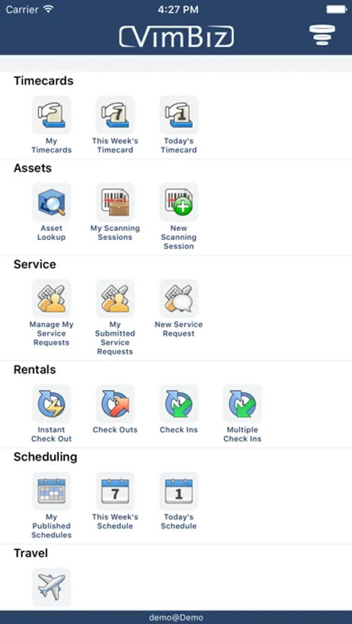 VimBiz is an enterprise-scalable software suite with a foundation of highly structured and integrated modules that also incorporate: Timecard Management, Enterprise Asset Management, Service Management (including ITSM), Purchasing & Receiving Management, Stockroom Management, Discrepancy Reporting, and Travel Planning.