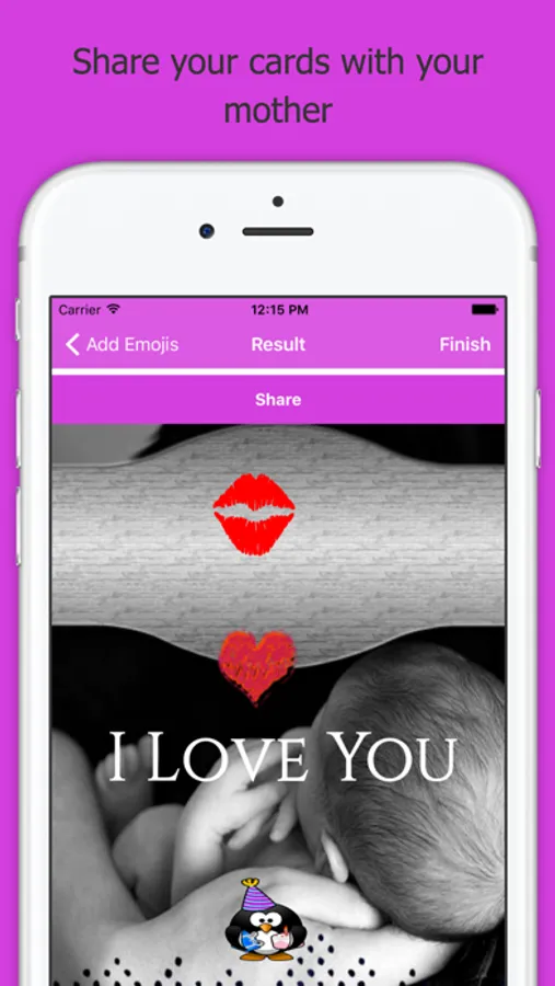 Once downloaded and installed in your device, you can choose what type of postcards you want to send out. Just browse through the different mother’s day pictures we have exclusively created for this important date. Once you find the one you like the most, you’ll be able to share it and send it to her, download it on your smartphone, set the image as background or even edit the image to insert your custom text in order to select the mother’s day messages you want to send out…