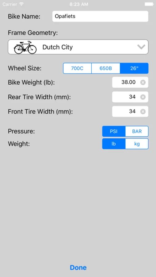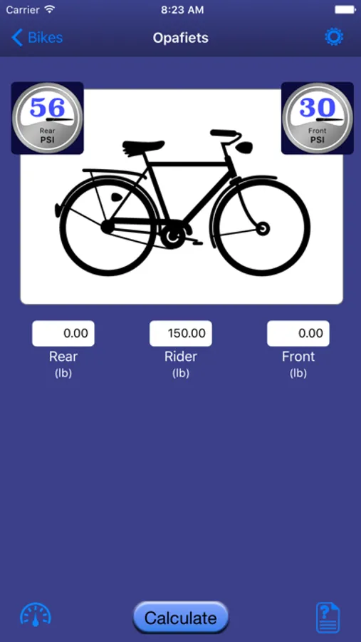 Avid cyclists at Edison Gauss Publishing created this bicycle tire pressure calculator based on research by Frank Berto, as published in the Spring 2007 issue of Bicycle Quarterly magazine. The app calculates optimal front and rear tire pressures for bicycles.