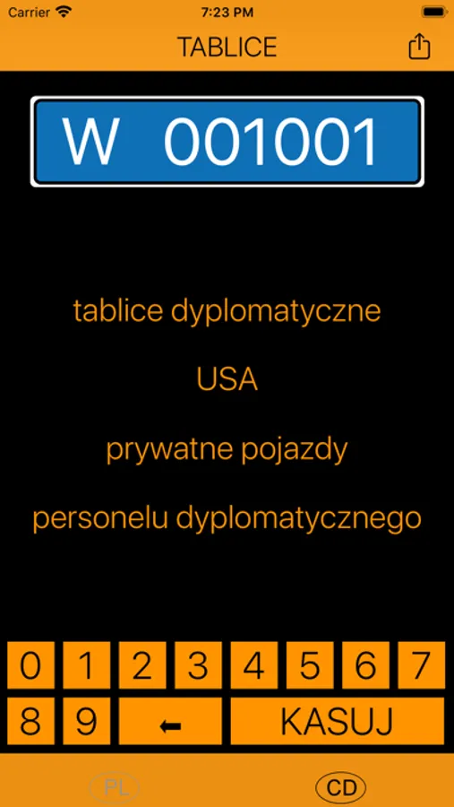 Aplikacja Tablice przeznaczona jest do sprawdzenia z jakiego regionu Polski pochodzi samochód.