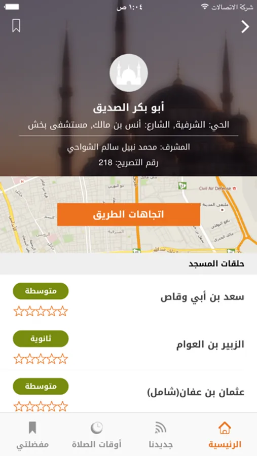 Using (هنا خيركم) App, you can find the nearest mosque, get to know more about students in Quran memorization rings, and reach to exhibitions that are distributed among all districts and cities within Jeddah province.