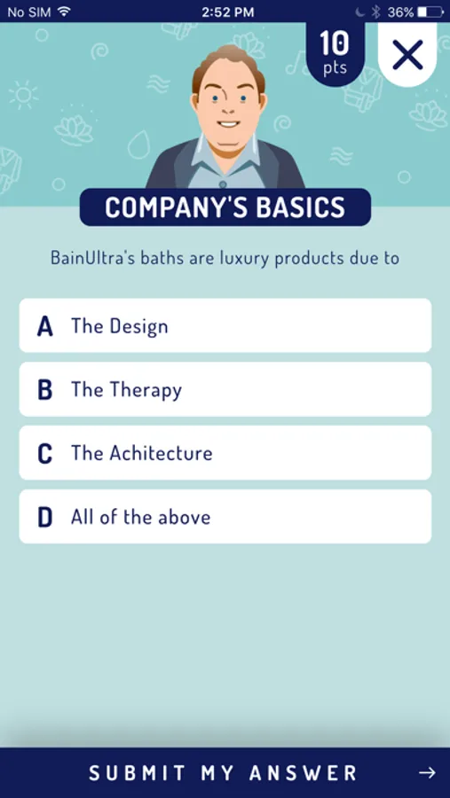 The Learn & Sell app by BainUltra is designed to help train our sales associates on the core values, products and therapies offered by BainUltra. The quiz show format allows players to advance through different modules at their own pace and track their progress against colleagues and other showrooms. Play to the end and become a BainUltra expert!