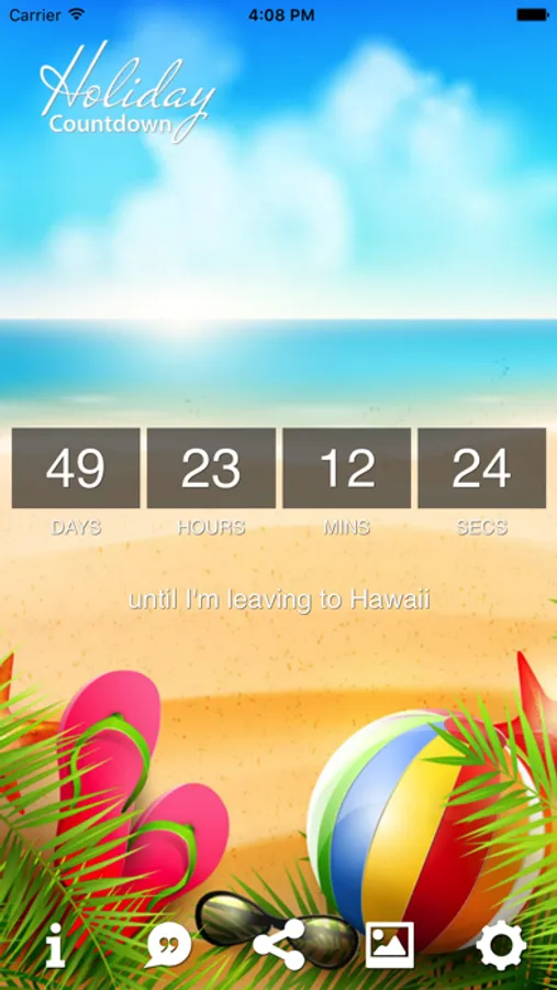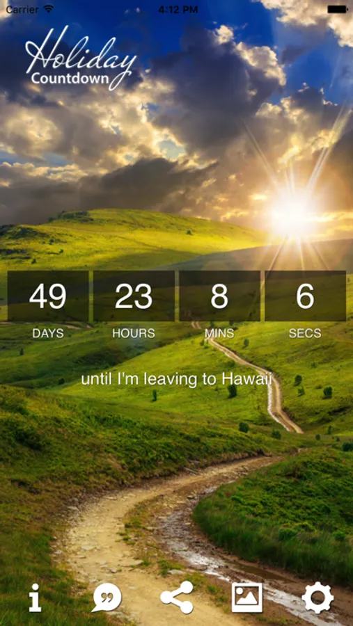 This Free Holiday Countdown app will give you the exact time until your special day. No matter of you are planning a trip to Hawaii, sightseeing in Paris, hiking in Colorado or skiing in Switzerland.