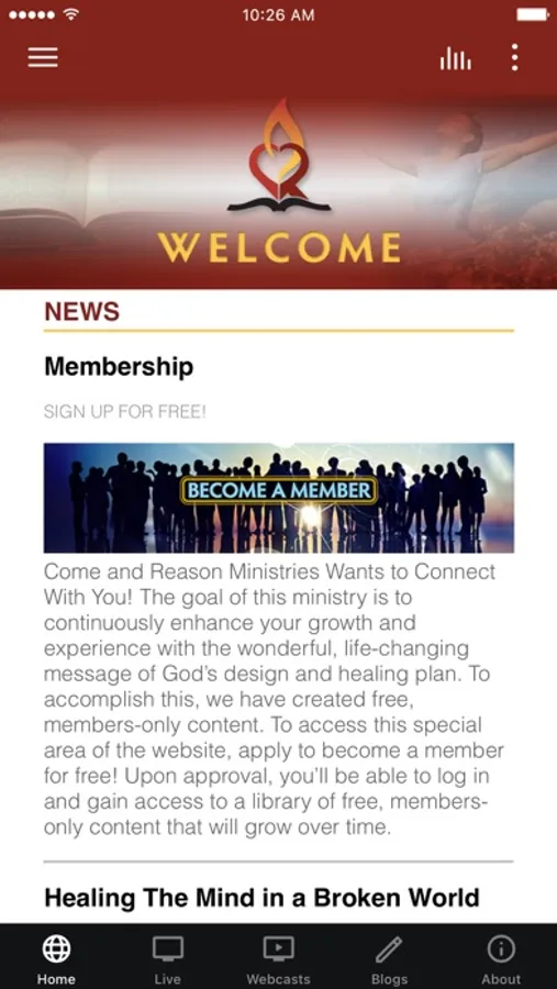 The Come And Reason Ministries App was created with the Subsplash App Platform.