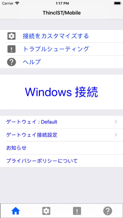 ThinclST/Mobileはお手元にあるiOSデバイスから、社内システムに設置したGatewayサーバを経由して、社内ネットワーク内のリモートデスクトップサーバに接続するアプリケーションです。