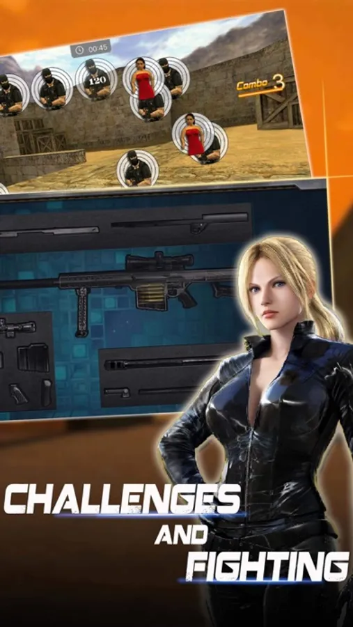 » Enemy in Scope: move the crosshair by swiping the screen, open the scope to zoom in, and try to shoot the enemy in the head.