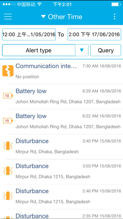 * Alert history: search the history of the alerts to discover previous events that happened to the eVTS tracker