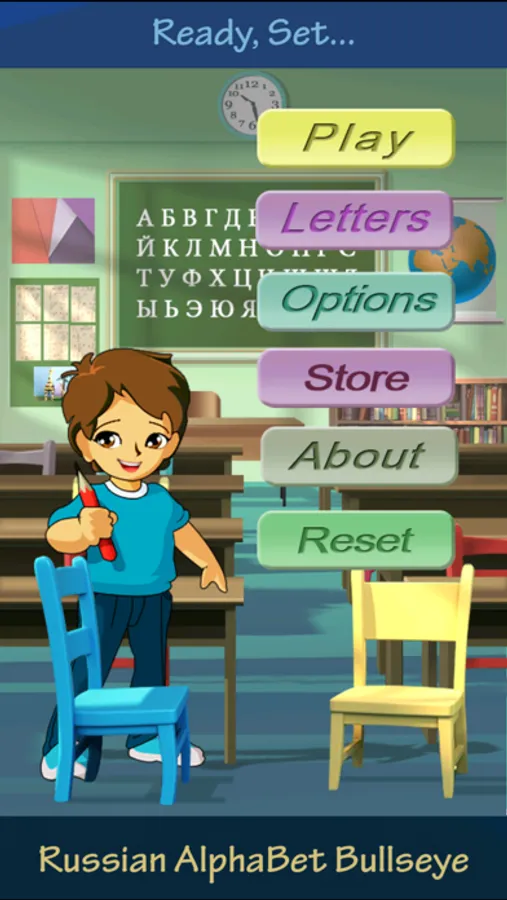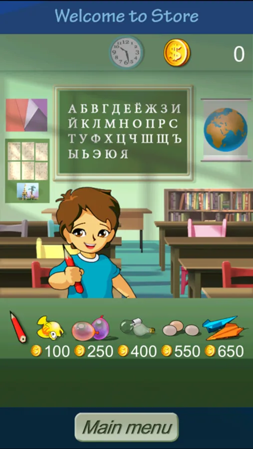 Throw a pencil at the letter targets to match the voice or written transliteration of the Cyrillic letter. Earn coins to purchase other fun and funny objects to throw at the targets. Each object makes a humorous noise when it hits or misses the target.
