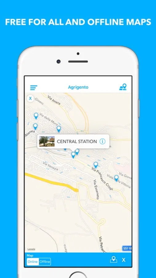 • Maps: this application was builds for who lives in agrigento or just visit the city, the application have an online map and map offline.