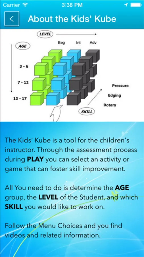Kids’ Kube is the app that will help ski & snowboard instructors guide the way to providing an effective activity or game, specifically geared toward your younger students.