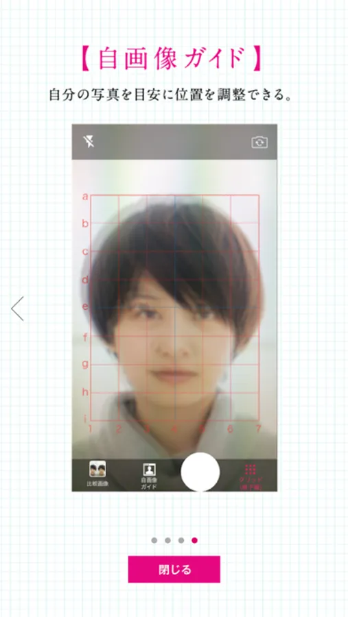 ②グリット線 縦と横に線が出るので目・鼻・口などを合わせて同じ角度で写真を撮影することが出来ます。