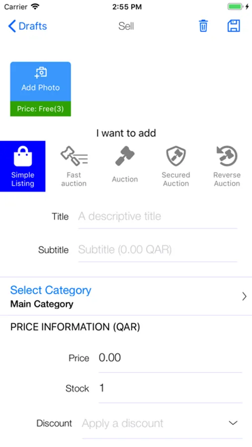 - Draft can be created simply by taking photos of products from the mobile application and then later entering the product information from the convenience of your pc when you are ready.