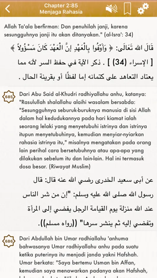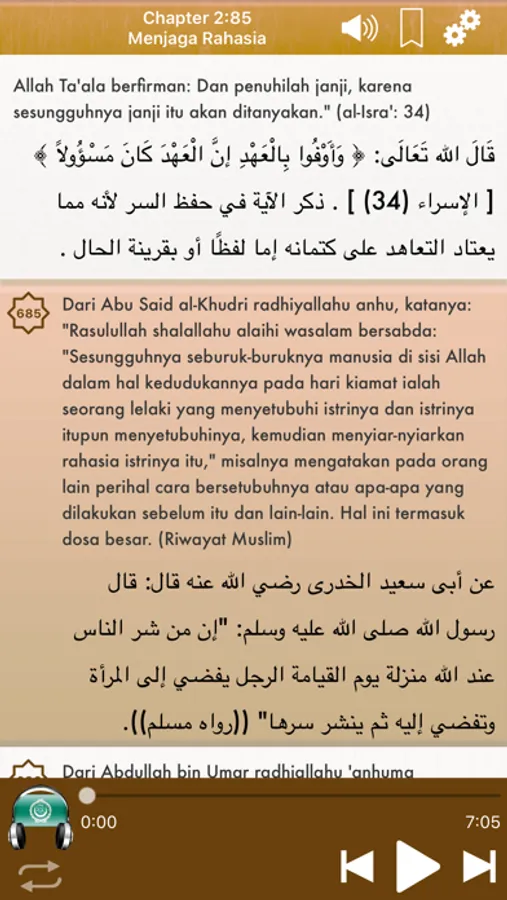 This application gives you the ability to read and listen to the 373 chapters of the book "Riyadh As-Salihin " on your Iphone / Ipad / Ipod Touch.