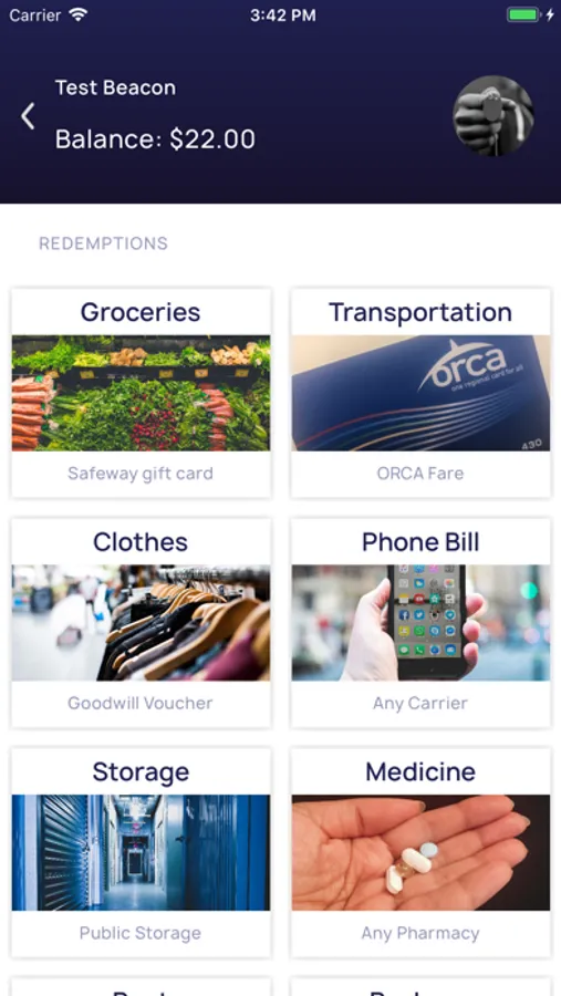 The Samaritan Partner app allows partnered merchants/nonprofits to redeem contributions made from citygoers for beacon holders. This app enables partners to view the balance and photo of beacon holder, and charge the balance for a stated good or service.