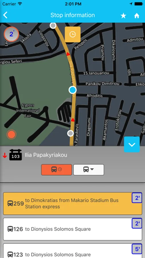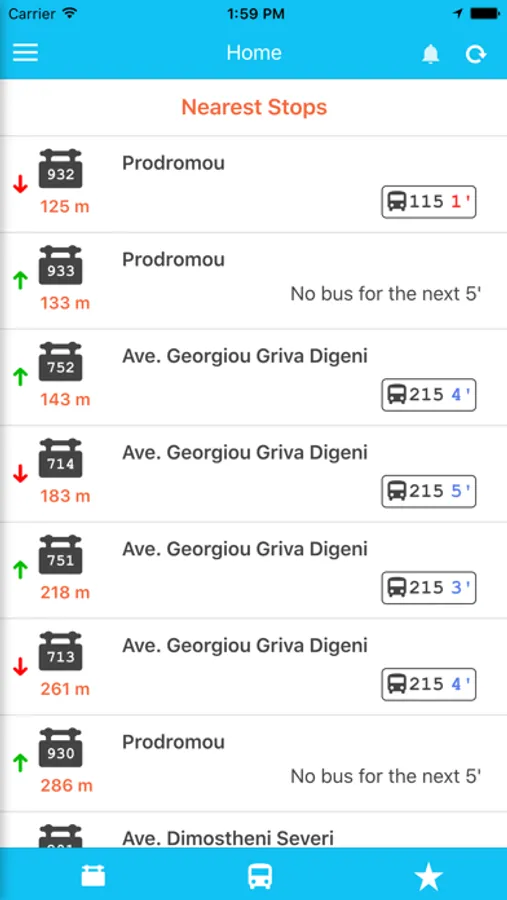 Moreover using location services, the application is able to calculate the nearest stops and list them along with the arriving times of the buses close to arrive. A handy feature for the ones already en route!