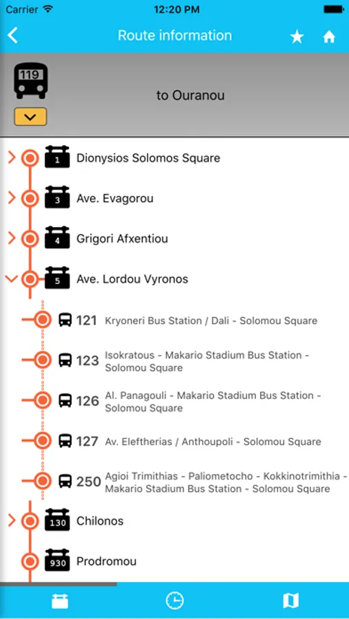 Scheduling information used by the application, although updated frequently, is static and is not coming from a real-time data service. Arriving buses are estimated based on this information, hence unexpected delays or disruptions of the time table cannot be dealt in an effective manner causing the application to produce erroneous predictions. With the implementation of I.T.S. project, real-time data will become available. As soon as this service is published from OSEL, there will be an update to incorporate it into the application towards producing accurate real-time estimations of arrival times. In order for the application to run full-featured, mobile data and location services must be enabled.