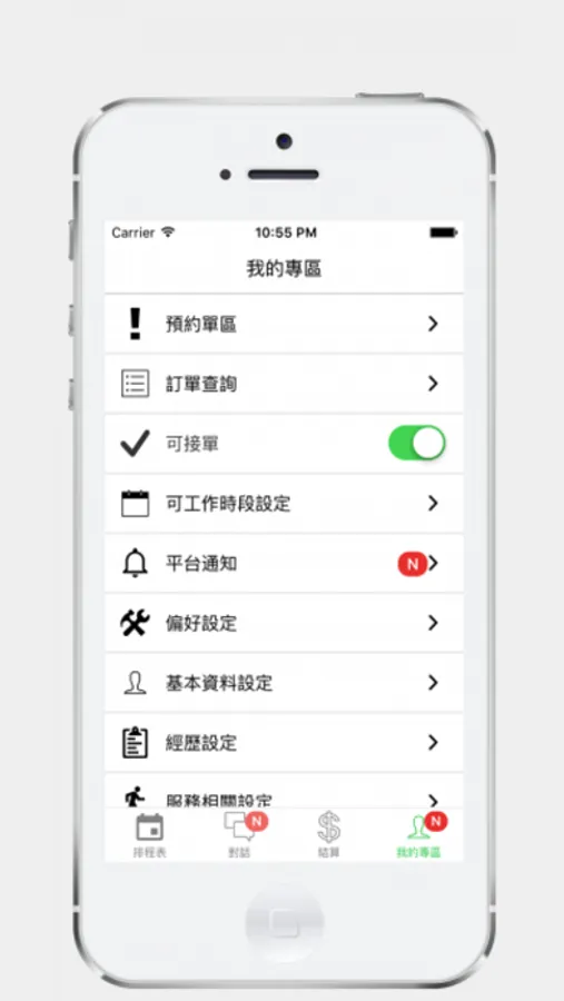 7. 照護人員自主管理訂單,自行決定接受或拒絕預約。
